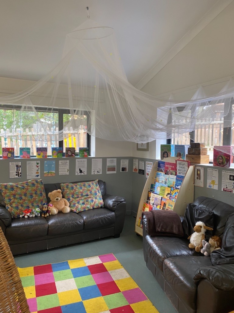 A place to relax and even take a nap on the soft cushions. Also, a place to share a book, with an adult or friends.